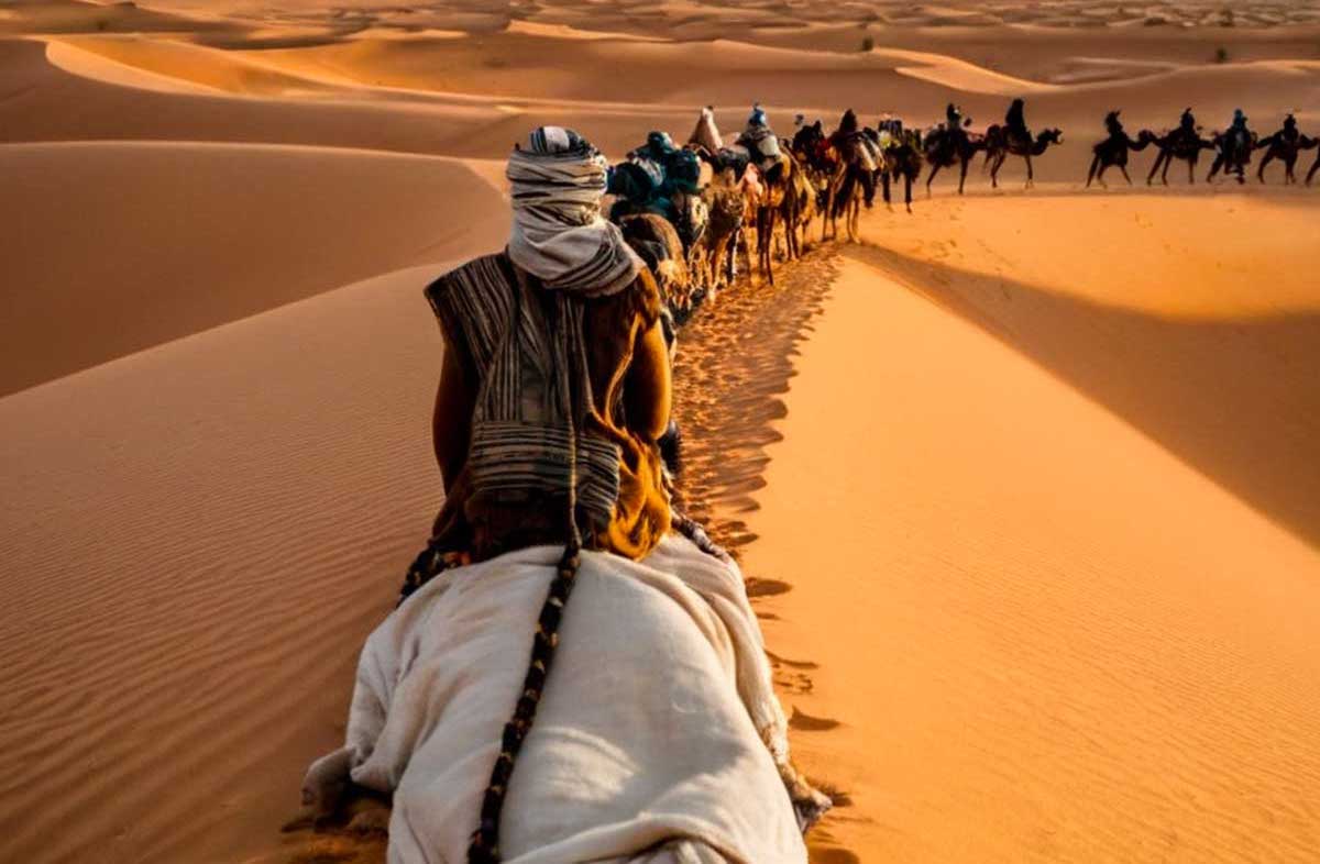 Poursuivez vers l'oasis d'Agdez, avant de traverser les dattiers et les palmiers de la vallée du Drâa, Admirez les kasbahs fortifiées le long de la route ; À l'arrivée à Zagora, rencontrez votre caravane de chameaux et montez à dos de chameau sur les dunes de sable tout en regardant le coucher de soleil peindre les sables du désert. Le trajet au cœur de l’Atlas vous offrira une expérience de voyage hors du commun ! Vous serez certainement émerveillé par le charme, la beauté et l’harmonie des paysages montagneux tout au long de votre excursion.
